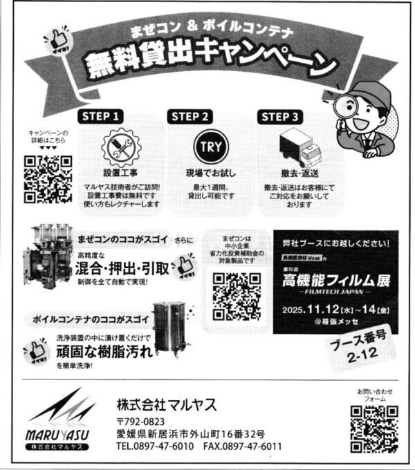 フィルム・ニュースに掲載されました 2025年9月20日発刊の『フィルム・ニュース 第216号』に弊社が掲載されましたのでお知らせいたします。掲載内容は以下の通りです。 お知らせ 投稿日:2025/10/09 日刊工業新聞に掲載されました お知らせの一覧へ戻る PAGE TOP