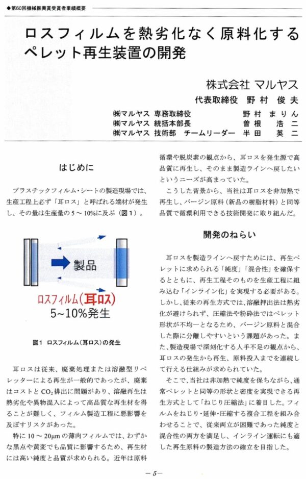 2026年2月20日発刊の『第60回 機械振興賞受賞者業績概要(一般財団法人 機械振興協会)』に弊社が掲載されましたのでお知らせいたします。